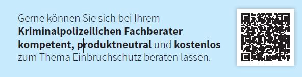 Gerne können Sie sich bei Ihrem Kriminalpolizeilichen Fachberater kompetent, produktneutral und kostenlos Thema Einbruchschutz beraten lassen.